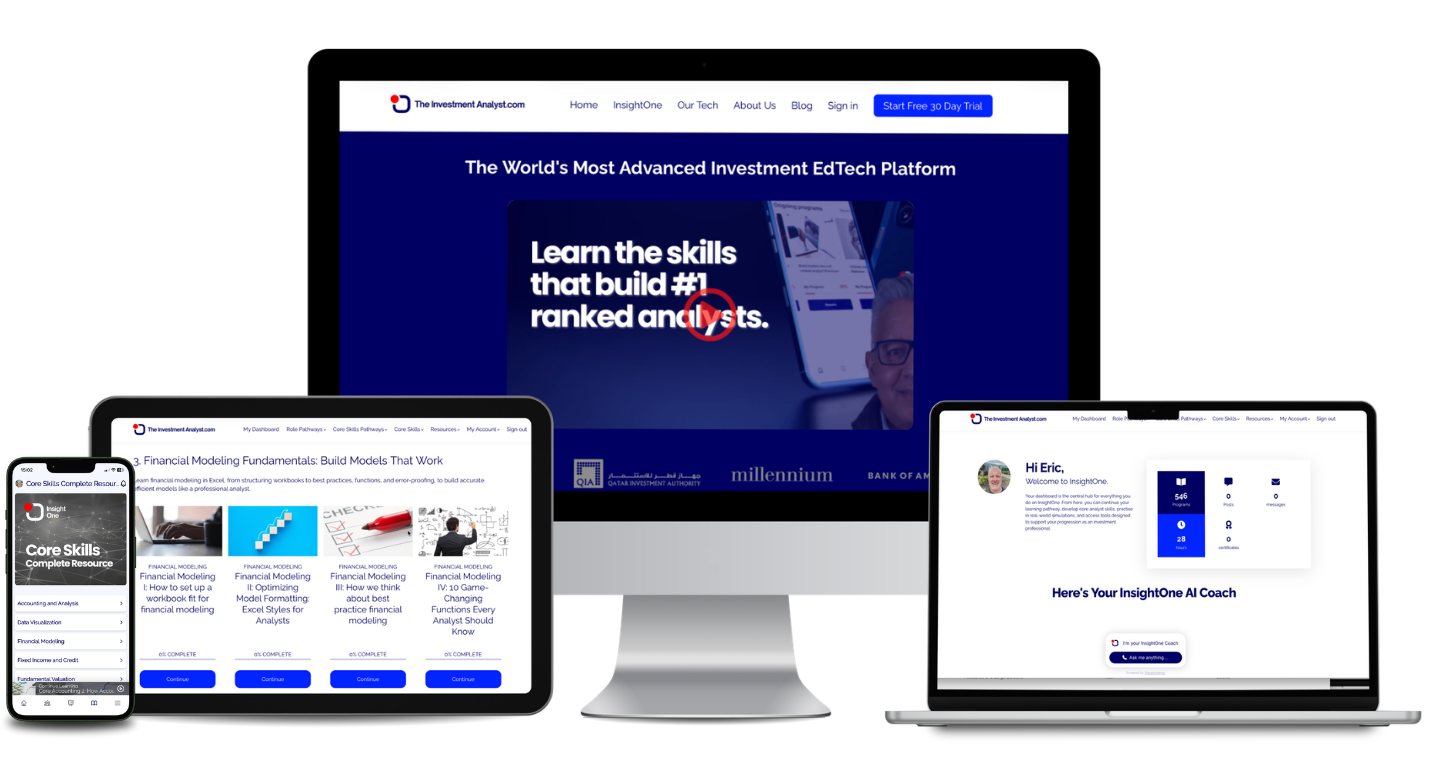 The Insight One app is a multi-award winning edtech platform that's helped 25,000+ individuals to advance their careers and learn the techniques used by the top 1% of investment analysts.